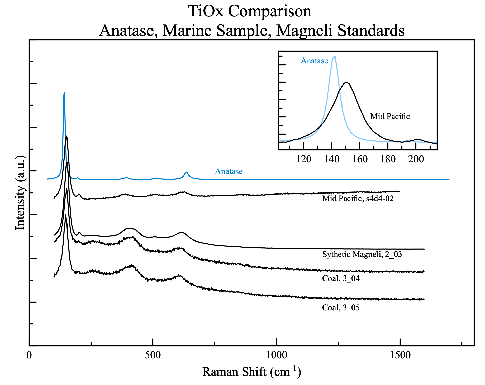 Here is what the data actually shows: MagnĂŠli phases are present wherever Raman spectroscopy has been run on environmental samples from the industrial era â high-altitude glacial ice, the open Pacific Ocean, the gut contents of museum fish, a terminal lake basin in the middle of Utah. Coal combustion is the dominant known mechanism for producing them outside a laboratory, though recent work has identified combustion of TiOâ-rich synthetic materials in urban structure fires as an additional source. They co-occur with the high-absorption layers in the Peru glacier stratigraphy.