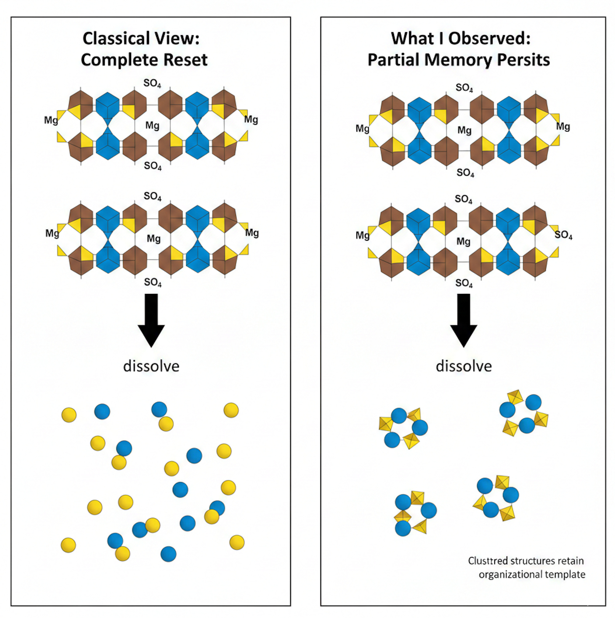 But dissolved ions in water arenât supposed to remember anything. Thermodynamics is clear: dissolving a crystal increases entropy. Order is destroyed. Information is erased. The system resets to maximum disorder.