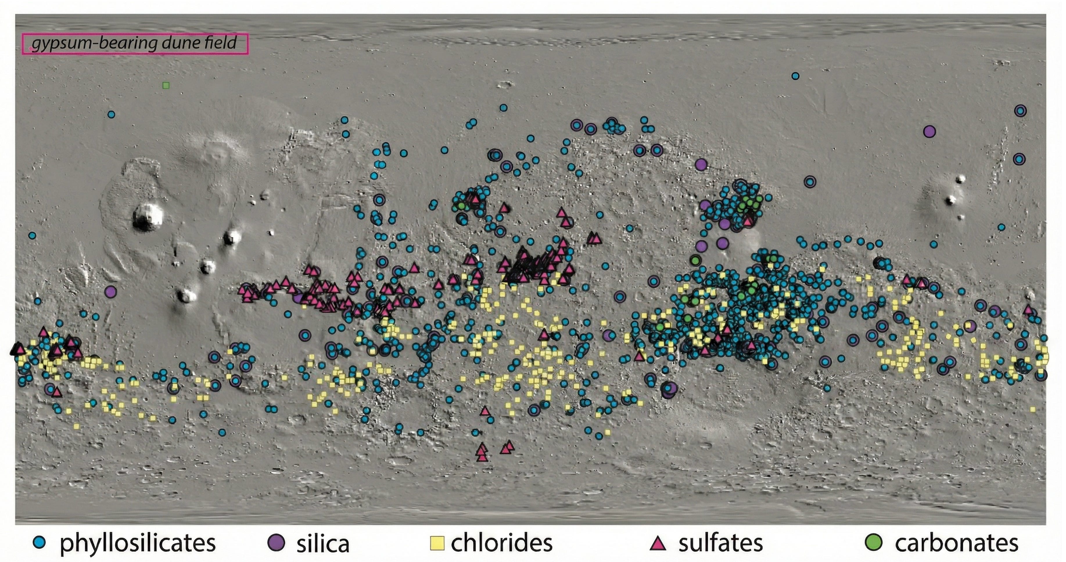 Magnesium sulfate deposits are everywhere on the Martian surface: Meridiani Planum, Gale Crater, Valles Marineris. Orbital spectroscopy and rover missions have been mapping them for two decades.